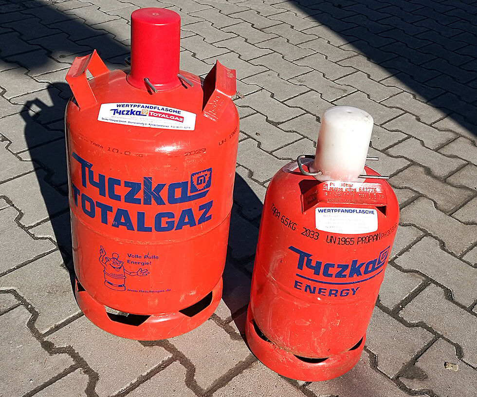 Wir füllen und tauschen Gasflaschen von Tyzka/Nestler 5 kg/11 kg für Groß- und Kleinverbraucher an unserer Tankstelle.